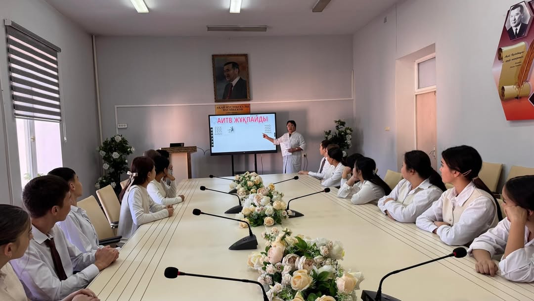 Медсестра колледжа Козыбаева Айгерим представила научно обоснованную информацию о ВИЧ/СПИДе, подробно рассказала о путях передачи вируса и мерах профилактики.